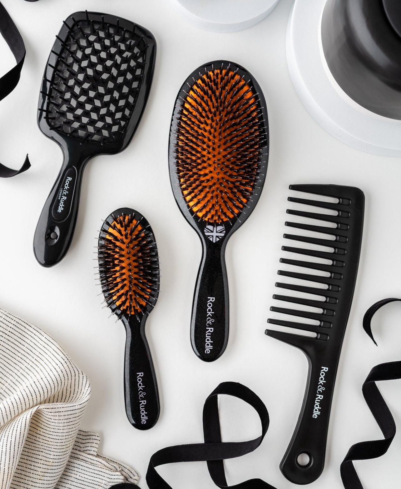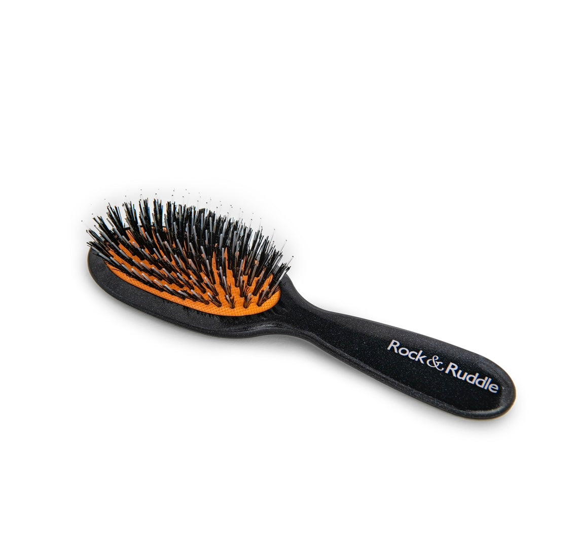 What Makes a Rock & Ruddle Hairbrush So Special? Rock & Ruddle hairbrushes are made with natural boar bristles, which are renowned for caring for your hair due to their structure being similar to human hair. Each bristle glides through your hair, conditioning as it spreads the natural oils from your scalp, making your hair look and feel shiny and healthy. Our bestselling Mixed Bristle hairbrush also has a nylon tip in each bristle bundle which is ideal for detangling and styling. This combination of bristles is excellent for stimulating and exfoliating your scalp to encourage hair growth, while also being gentle enough to not tug on hair. Unlike other hairbrushes of their type, Rock & Ruddle hairbrushes have a removable bristle pad for thorough cleaning, making it possible to replace just the bristle pad after a long period of use, rather than replacing a full brush.