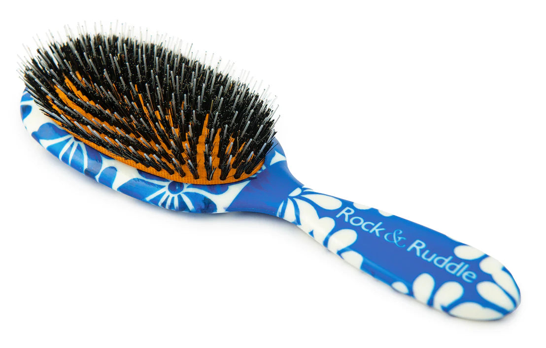What Makes a Rock & Ruddle Hairbrush So Special? Rock & Ruddle hairbrushes are made with natural boar bristles, which are renowned for caring for your hair due to their structure being similar to human hair. Each bristle glides through your hair, conditioning as it spreads the natural oils from your scalp, making your hair look and feel shiny and healthy. Our bestselling Mixed Bristle hairbrush also has a nylon tip in each bristle bundle which is ideal for detangling and styling. This combination of bristles is excellent for stimulating and exfoliating your scalp to encourage hair growth, while also being gentle enough to not tug on hair. Unlike other hairbrushes of their type, Rock & Ruddle hairbrushes have a removable bristle pad for thorough cleaning, making it possible to replace just the bristle pad after a long period of use, rather than replacing a full brush.