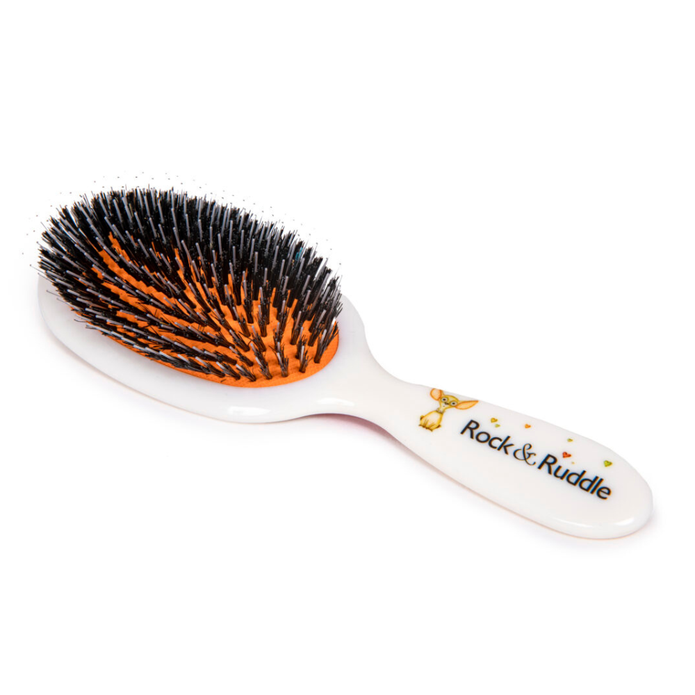 What Makes a Rock & Ruddle Hairbrush So Special? Rock & Ruddle hairbrushes are made with natural boar bristles, which are renowned for caring for your hair due to their structure being similar to human hair. Each bristle glides through your hair, conditioning as it spreads the natural oils from your scalp, making your hair look and feel shiny and healthy. Our bestselling Mixed Bristle hairbrush also has a nylon tip in each bristle bundle which is ideal for detangling and styling. This combination of bristles is excellent for stimulating and exfoliating your scalp to encourage hair growth, while also being gentle enough to not tug on hair. Unlike other hairbrushes of their type, Rock & Ruddle hairbrushes have a removable bristle pad for thorough cleaning, making it possible to replace just the bristle pad after a long period of use, rather than replacing a full brush.