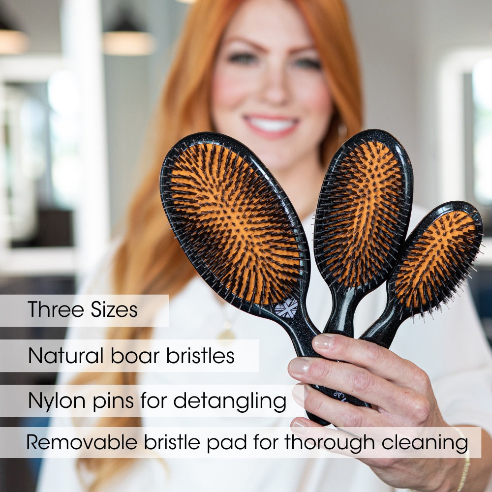 - XL Luxury (approx 9.25 x 3.25") Mixed Bristle: exceptional for long or thick hair, or for hair extensions.