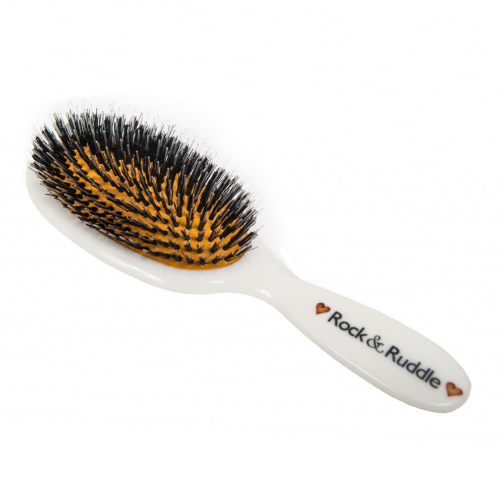 What Makes a Rock & Ruddle Hairbrush So Special? Rock & Ruddle hairbrushes are made with natural boar bristles, which are renowned for caring for your hair due to their structure being similar to human hair. Each bristle glides through your hair, conditioning as it spreads the natural oils from your scalp, making your hair look and feel shiny and healthy. Our bestselling Mixed Bristle hairbrush also has a nylon tip in each bristle bundle which is ideal for detangling and styling. This combination of bristles is excellent for stimulating and exfoliating your scalp to encourage hair growth, while also being gentle enough to not tug on hair. Unlike other hairbrushes of their type, Rock & Ruddle hairbrushes have a removable bristle pad for thorough cleaning, making it possible to replace just the bristle pad after a long period of use, rather than replacing a full brush.