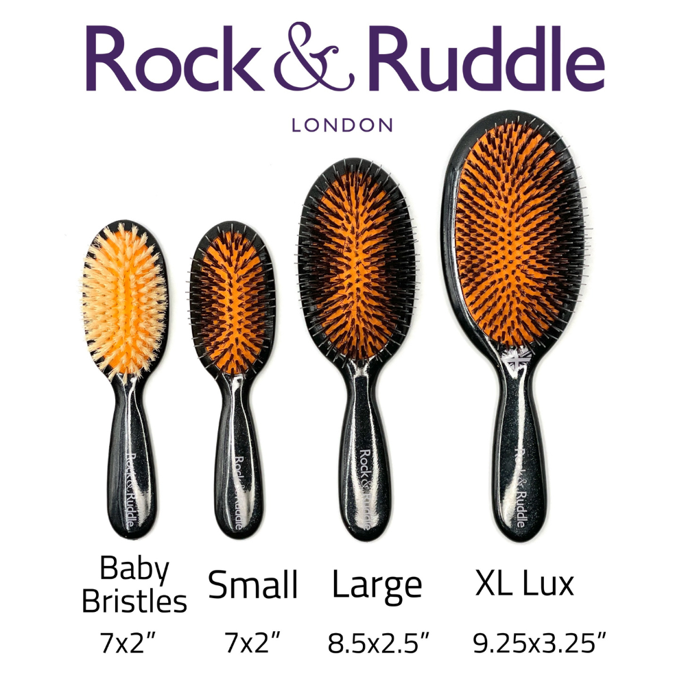 What Makes a Rock & Ruddle Hairbrush So Special? Rock & Ruddle hairbrushes are made with natural boar bristles, which are renowned for caring for your hair due to their structure being similar to human hair. Each bristle glides through your hair, conditioning as it spreads the natural oils from your scalp, making your hair look and feel shiny and healthy. Our bestselling Mixed Bristle hairbrush also has a nylon tip in each bristle bundle which is ideal for detangling and styling. This combination of bristles is excellent for stimulating and exfoliating your scalp to encourage hair growth, while also being gentle enough to not tug on hair. Unlike other hairbrushes of their type, Rock & Ruddle hairbrushes have a removable bristle pad for thorough cleaning, making it possible to replace just the bristle pad after a long period of use, rather than replacing a full brush.