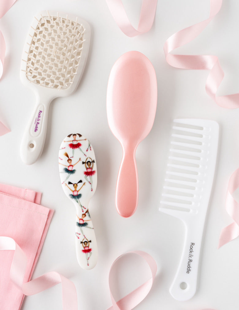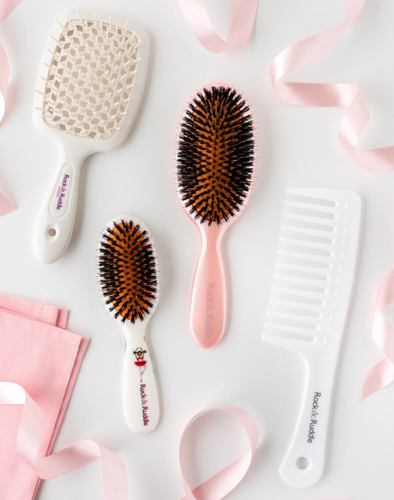 What Makes a Rock & Ruddle Hairbrush So Special? Rock & Ruddle hairbrushes are made with natural boar bristles, which are renowned for caring for your hair due to their structure being similar to human hair. Each bristle glides through your hair, conditioning as it spreads the natural oils from your scalp, making your hair look and feel shiny and healthy. Our bestselling Mixed Bristle hairbrush also has a nylon tip in each bristle bundle which is ideal for detangling and styling. This combination of bristles is excellent for stimulating and exfoliating your scalp to encourage hair growth, while also being gentle enough to not tug on hair. Unlike other hairbrushes of their type, Rock & Ruddle hairbrushes have a removable bristle pad for thorough cleaning, making it possible to replace just the bristle pad after a long period of use, rather than replacing a full brush.
