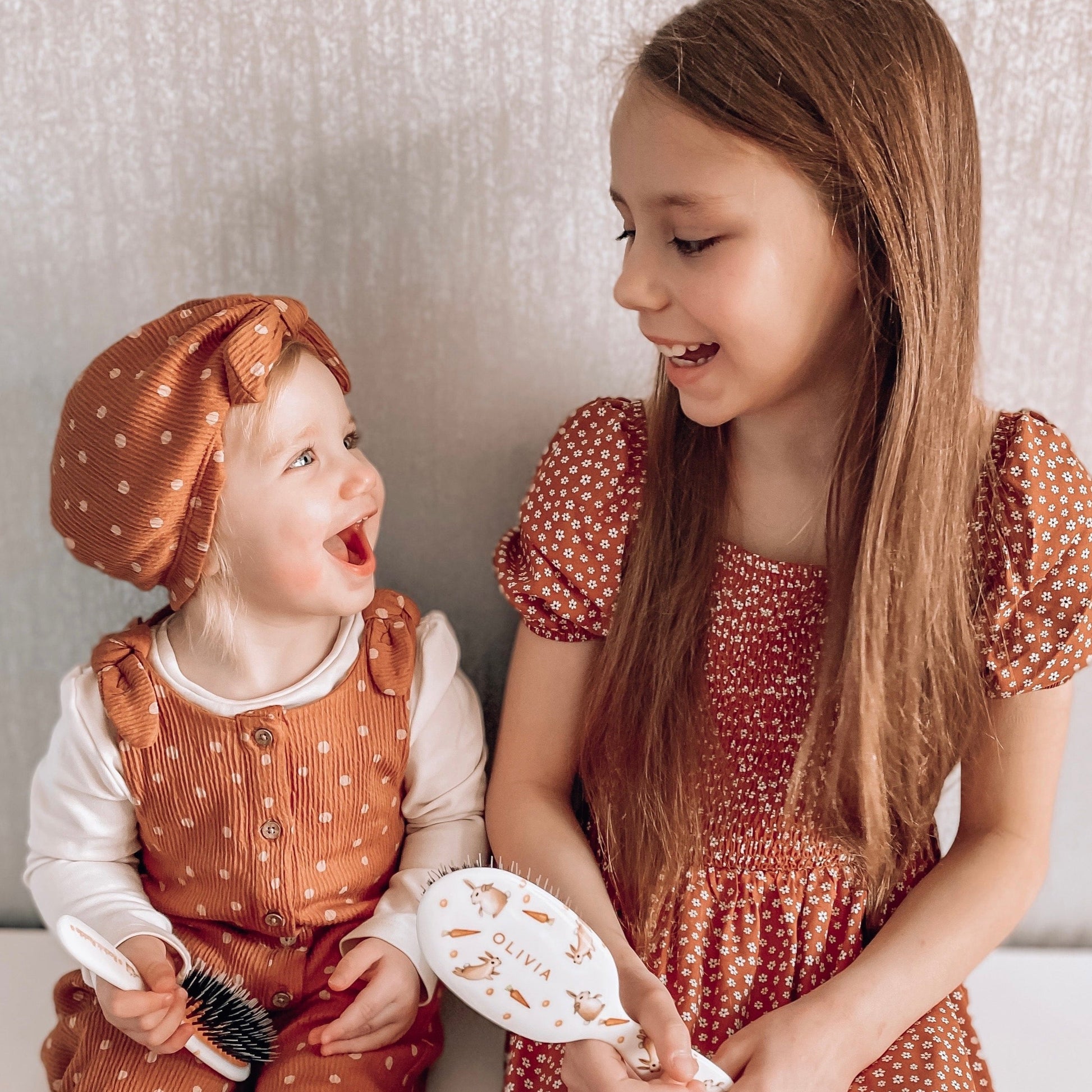 This hairbrush makes a delightful gift or a spoiling self-purchase. For the perfect gift baby shower or christening gift offer this hairbrush with a matching comb or even our orange pocket comb.