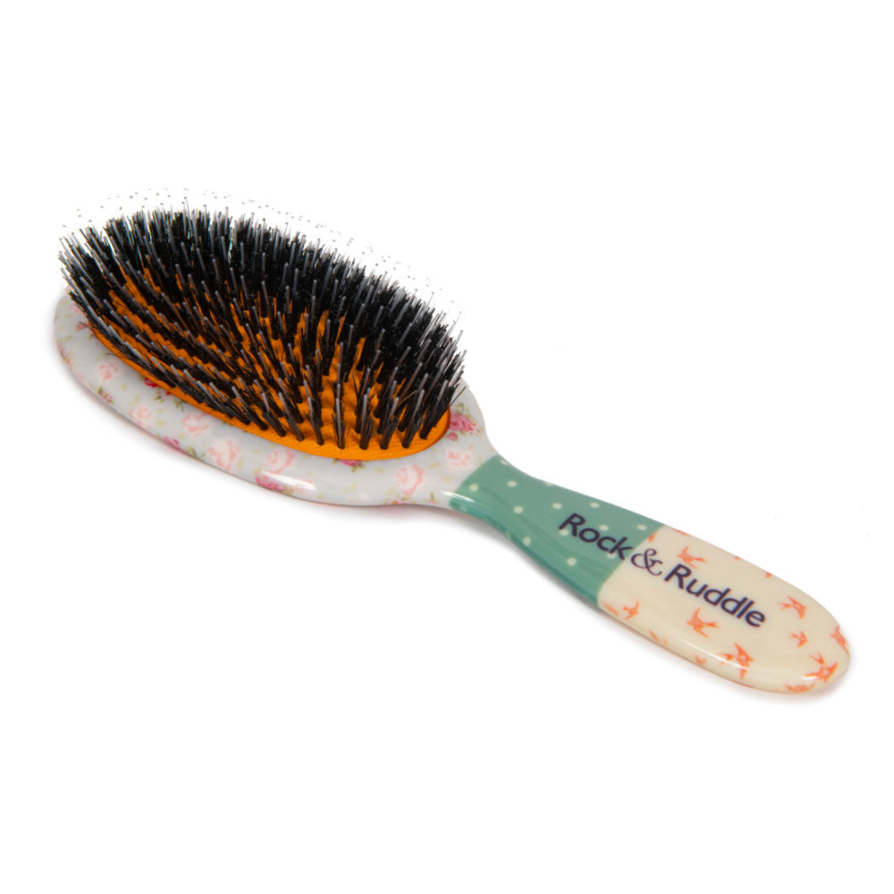 What Makes a Rock & Ruddle Hairbrush So Special? Rock & Ruddle hairbrushes are made with natural boar bristles, which are renowned for caring for your hair due to their structure being similar to human hair. Each bristle glides through your hair, conditioning as it spreads the natural oils from your scalp, making your hair look and feel shiny and healthy. Our bestselling Mixed Bristle hairbrush also has a nylon tip in each bristle bundle which is ideal for detangling and styling. This combination of bristles is excellent for stimulating and exfoliating your scalp to encourage hair growth, while also being gentle enough to not tug on hair. Unlike other hairbrushes of their type, Rock & Ruddle hairbrushes have a removable bristle pad for thorough cleaning, making it possible to replace just the bristle pad after a long period of use, rather than replacing a full brush.