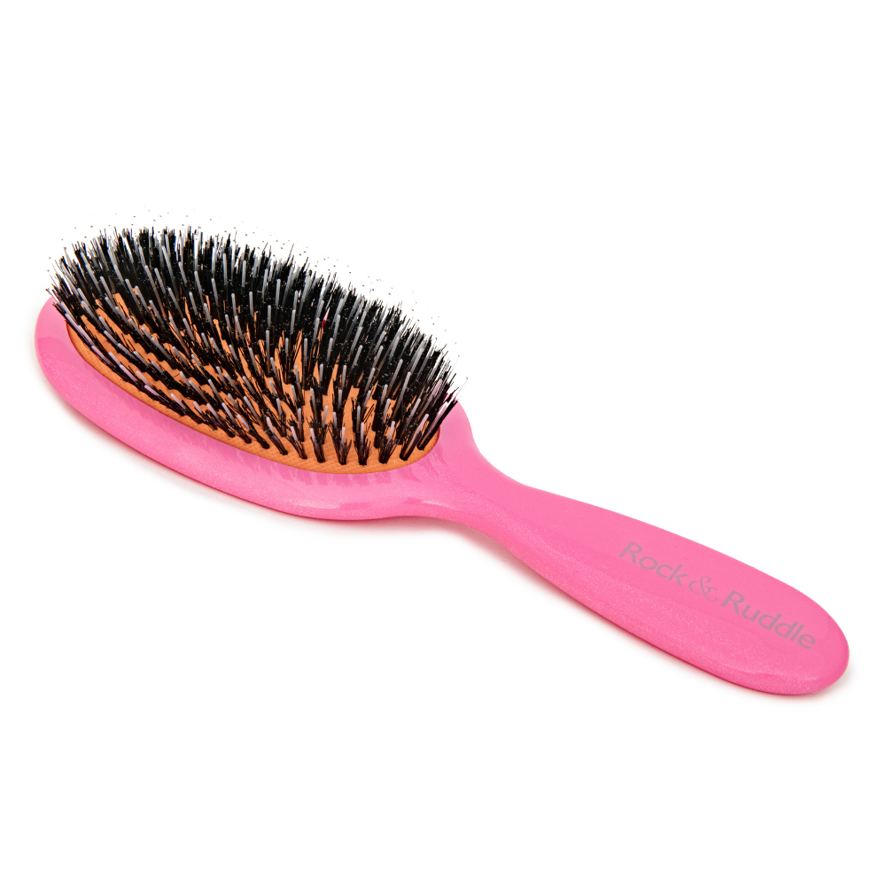 What Makes a Rock & Ruddle Hairbrush So Special? Rock & Ruddle hairbrushes are made with natural boar bristles, which are renowned for caring for your hair due to their structure being similar to human hair. Each bristle glides through your hair, conditioning as it spreads the natural oils from your scalp, making your hair look and feel shiny and healthy. Our bestselling Mixed Bristle hairbrush also has a nylon tip in each bristle bundle which is ideal for detangling and styling. This combination of bristles is excellent for stimulating and exfoliating your scalp to encourage hair growth, while also being gentle enough to not tug on hair. Unlike other hairbrushes of their type, Rock & Ruddle hairbrushes have a removable bristle pad for thorough cleaning, making it possible to replace just the bristle pad after a long period of use, rather than replacing a full brush.