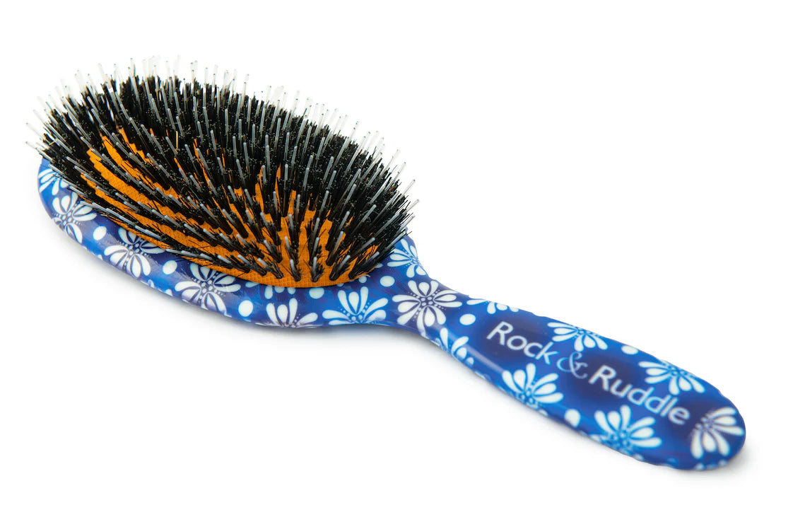 What Makes a Rock & Ruddle Hairbrush So Special? Rock & Ruddle hairbrushes are made with natural boar bristles, which are renowned for caring for your hair due to their structure being similar to human hair. Each bristle glides through your hair, conditioning as it spreads the natural oils from your scalp, making your hair look and feel shiny and healthy. Our bestselling Mixed Bristle hairbrush also has a nylon tip in each bristle bundle which is ideal for detangling and styling. This combination of bristles is excellent for stimulating and exfoliating your scalp to encourage hair growth, while also being gentle enough to not tug on hair. Unlike other hairbrushes of their type, Rock & Ruddle hairbrushes have a removable bristle pad for thorough cleaning, making it possible to replace just the bristle pad after a long period of use, rather than replacing a full brush.