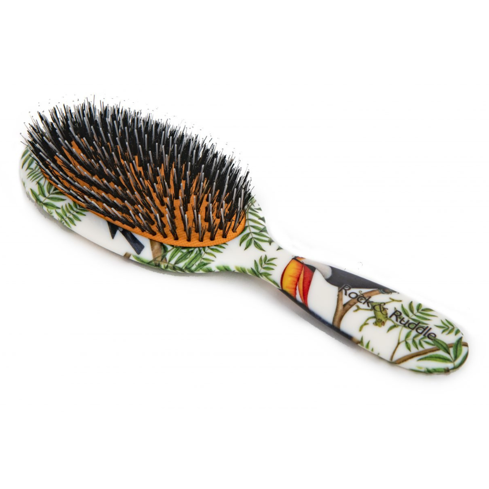 What Makes a Rock & Ruddle Hairbrush So Special? Rock & Ruddle hairbrushes are made with natural boar bristles, which are renowned for caring for your hair due to their structure being similar to human hair. Each bristle glides through your hair, conditioning as it spreads the natural oils from your scalp, making your hair look and feel shiny and healthy. Our bestselling Mixed Bristle hairbrush also has a nylon tip in each bristle bundle which is ideal for detangling and styling. This combination of bristles is excellent for stimulating and exfoliating your scalp to encourage hair growth, while also being gentle enough to not tug on hair. Unlike other hairbrushes of their type, Rock & Ruddle hairbrushes have a removable bristle pad for thorough cleaning, making it possible to replace just the bristle pad after a long period of use, rather than replacing a full brush.