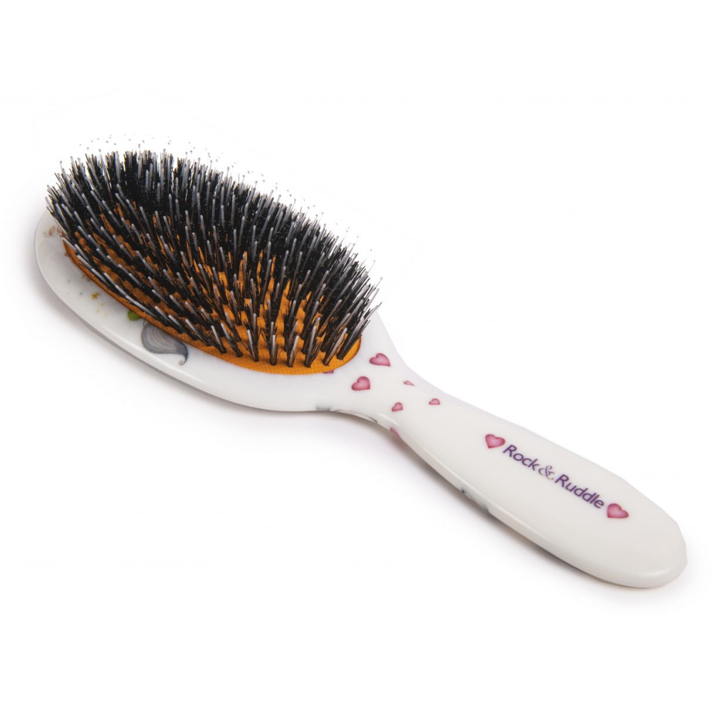 What Makes a Rock & Ruddle Hairbrush So Special? Rock & Ruddle hairbrushes are made with natural boar bristles, which are renowned for caring for your hair due to their structure being similar to human hair. Each bristle glides through your hair, conditioning as it spreads the natural oils from your scalp, making your hair look and feel shiny and healthy. Our bestselling Mixed Bristle hairbrush also has a nylon tip in each bristle bundle which is ideal for detangling and styling. This combination of bristles is excellent for stimulating and exfoliating your scalp to encourage hair growth, while also being gentle enough to not tug on hair. Unlike other hairbrushes of their type, Rock & Ruddle hairbrushes have a removable bristle pad for thorough cleaning, making it possible to replace just the bristle pad after a long period of use, rather than replacing a full brush.